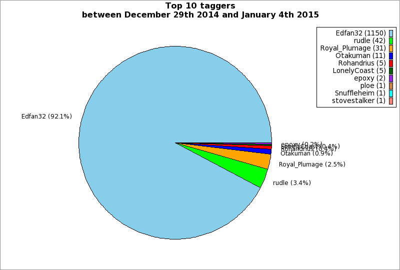 | Top 10 taggers between December 29th 2014 and January 4th 2015 | ||