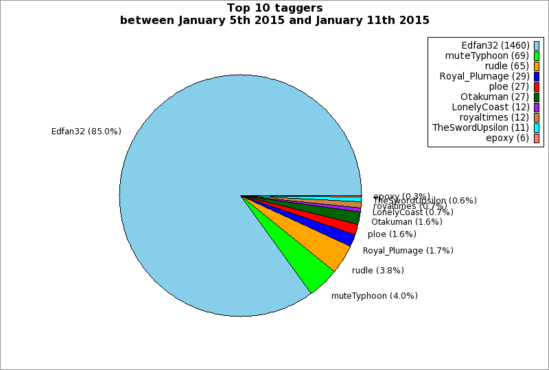 | Top 10 taggers between January 5th 2015 and January 11th 2015 | ||