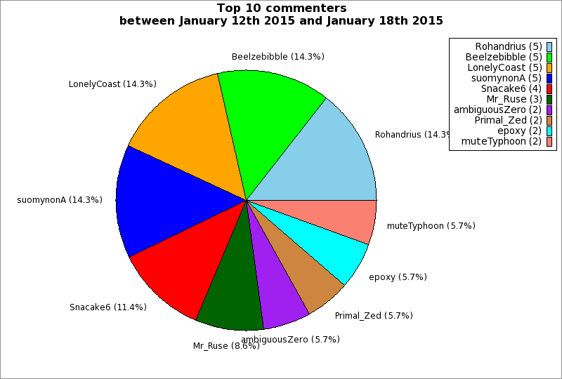 | Top 10 commenters between January 12th 2015 and January 18th 2015 | ||