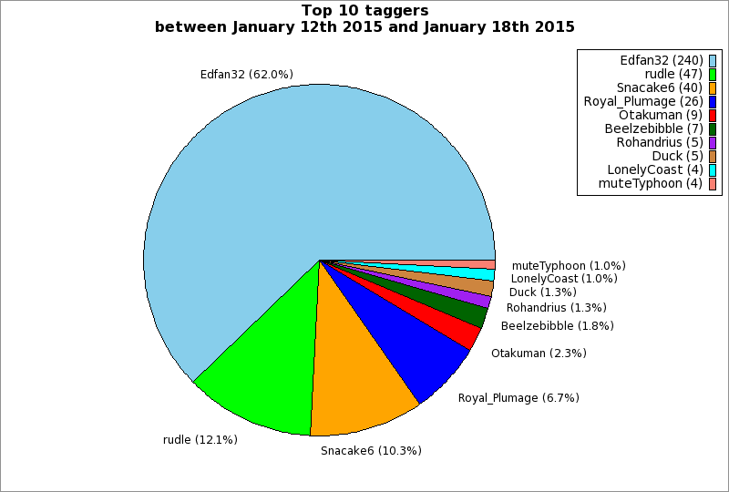 | Top 10 taggers between January 12th 2015 and January 18th 2015 | ||