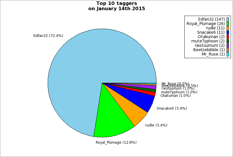 | Top 10 taggers on January 14th 2015 | ||