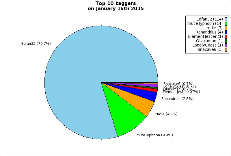 | Top 10 taggers on January 16th 2015 | ||