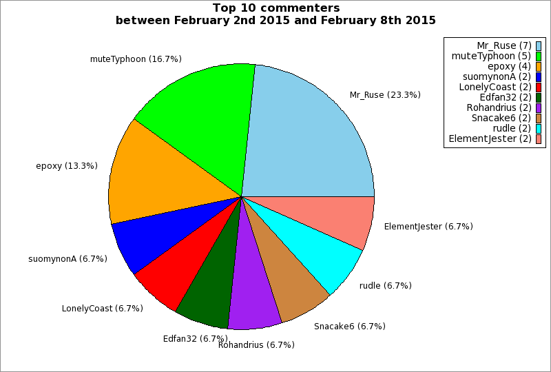 | Top 10 commenters between February 2nd 2015 and February 8th 2015 | ||