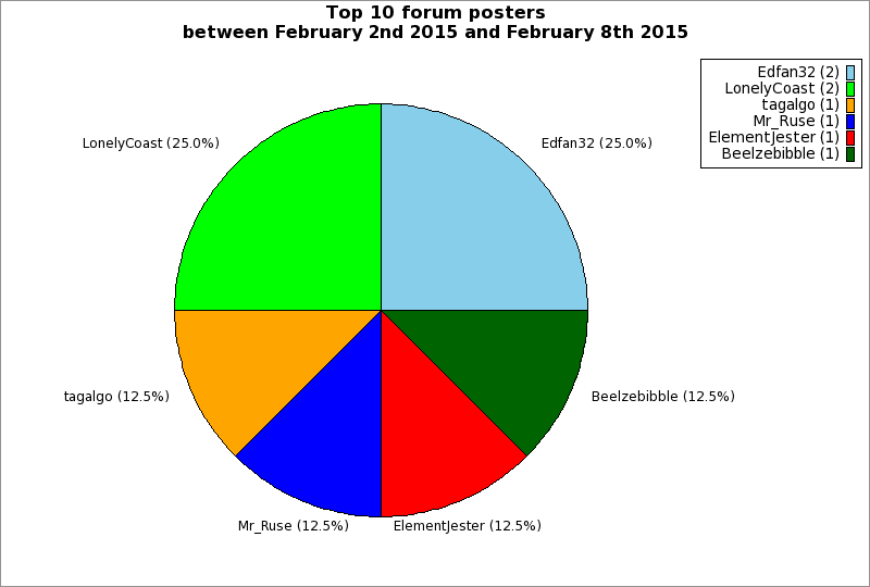 | Top 10 forum posters between February 2nd 2015 and February 8th 2015 | ||