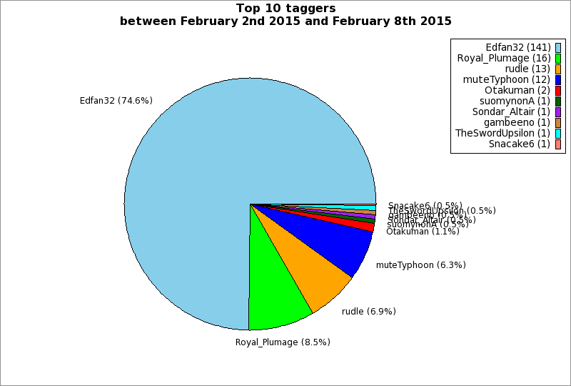 | Top 10 taggers between February 2nd 2015 and February 8th 2015 | ||