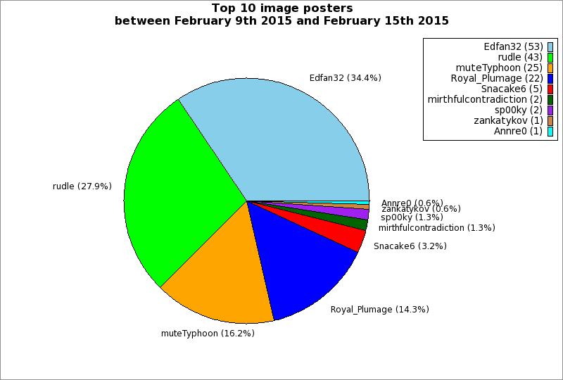 | Top 10 image posters between February 9th 2015 and February 15th 2015 | ||