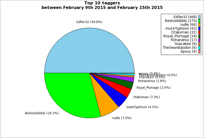 | Top 10 taggers between February 9th 2015 and February 15th 2015 | ||