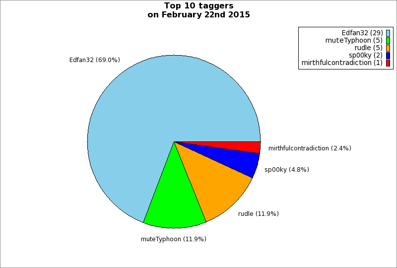 | Top 10 taggers on February 22nd 2015 | ||
