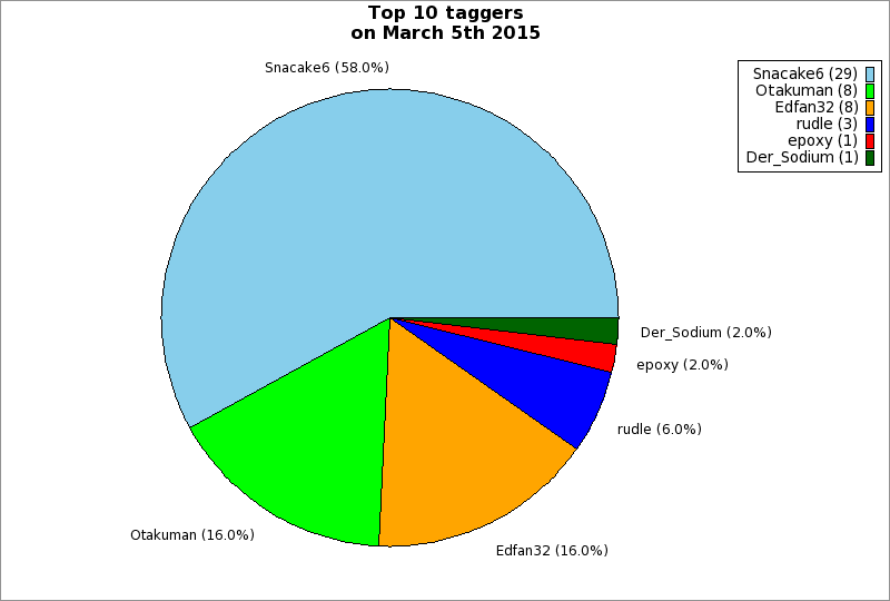 | Top 10 taggers on March 5th 2015 | ||