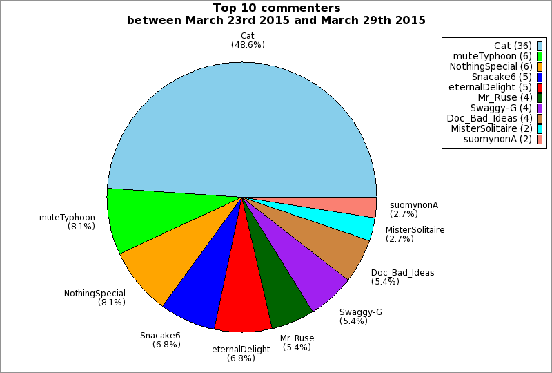 | Top 10 commenters between March 23rd 2015 and March 29th 2015 | ||