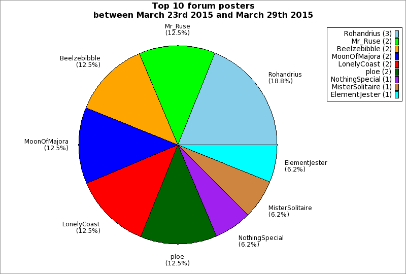 | Top 10 forum posters between March 23rd 2015 and March 29th 2015 | ||
