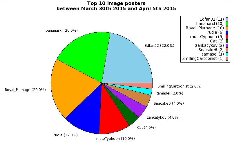 | Top 10 image posters between March 30th 2015 and April 5th 2015 | ||