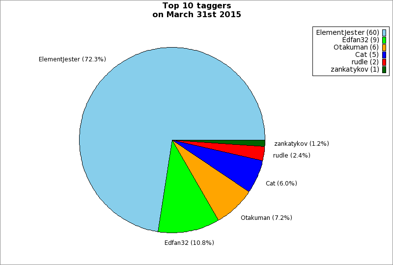 | Top 10 taggers on March 31st 2015 | ||
