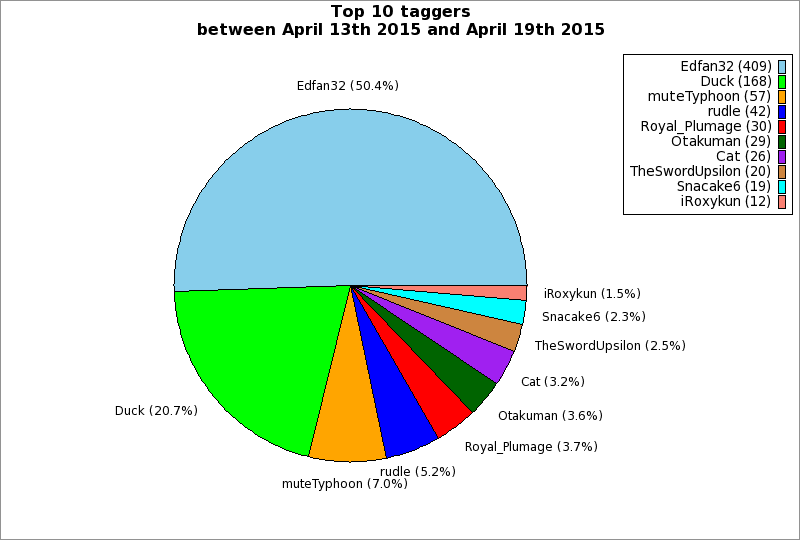 | Top 10 taggers between April 13th 2015 and April 19th 2015 | ||