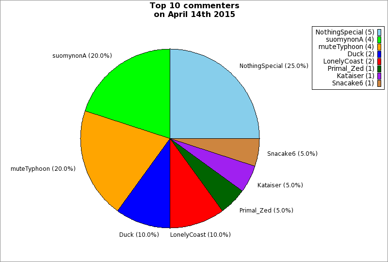 | Top 10 commenters on April 14th 2015 | ||