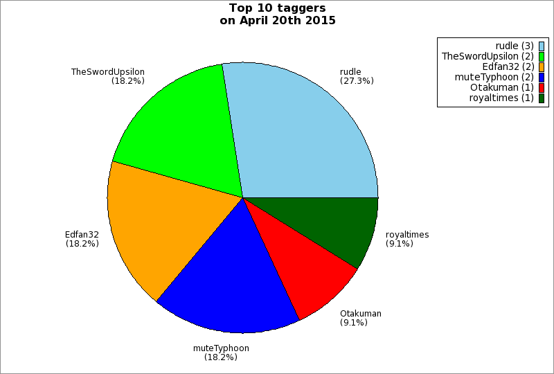 | Top 10 taggers on April 20th 2015 | ||