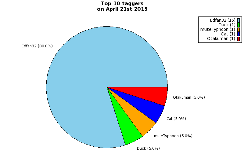| Top 10 taggers on April 21st 2015 | ||