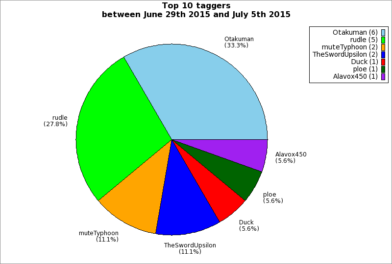 | Top 10 taggers between June 29th 2015 and July 5th 2015 | ||