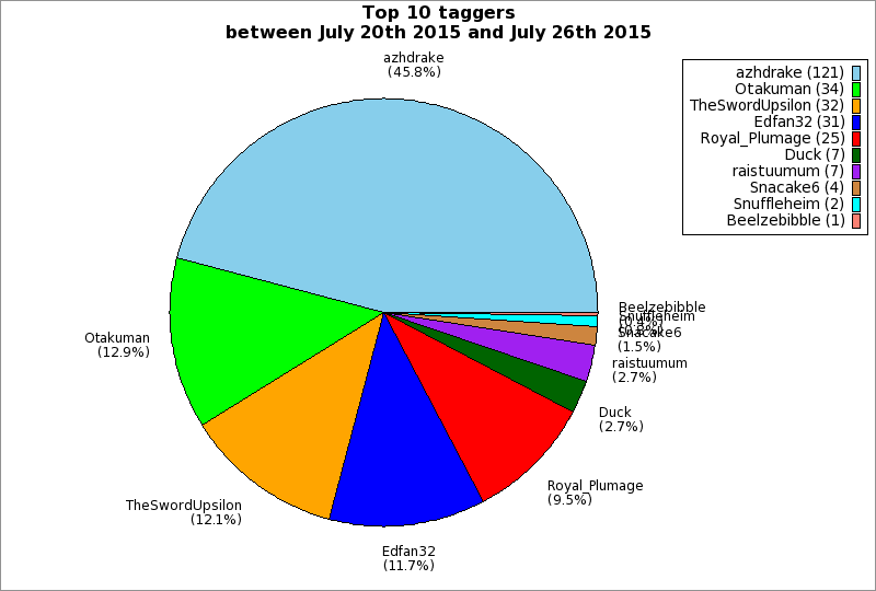 | Top 10 taggers between July 20th 2015 and July 26th 2015 | ||