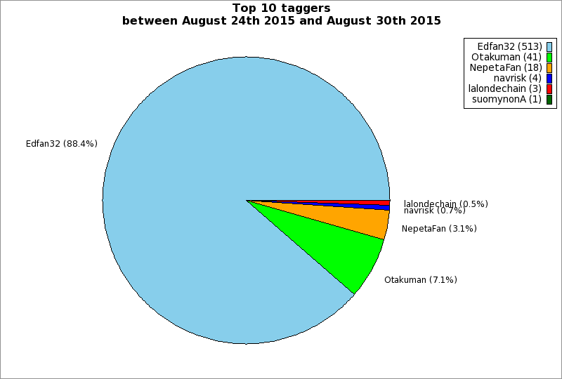 | Top 10 taggers between August 24th 2015 and August 30th 2015 | ||