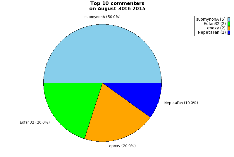 | Top 10 commenters on August 30th 2015 | ||