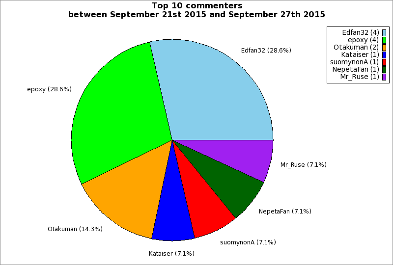 | Top 10 commenters between September 21st 2015 and September 27th 2015 | ||
