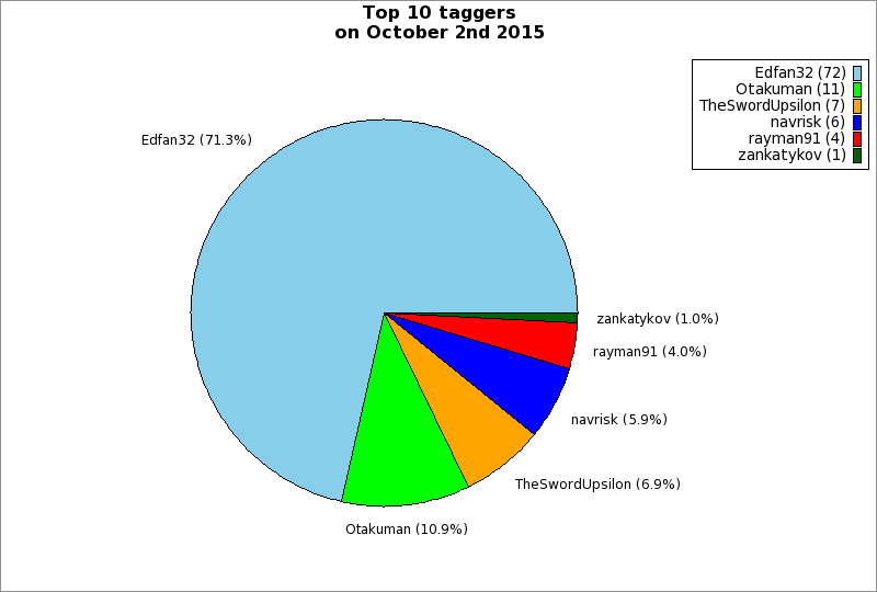 | Top 10 taggers on October 2nd 2015 | ||