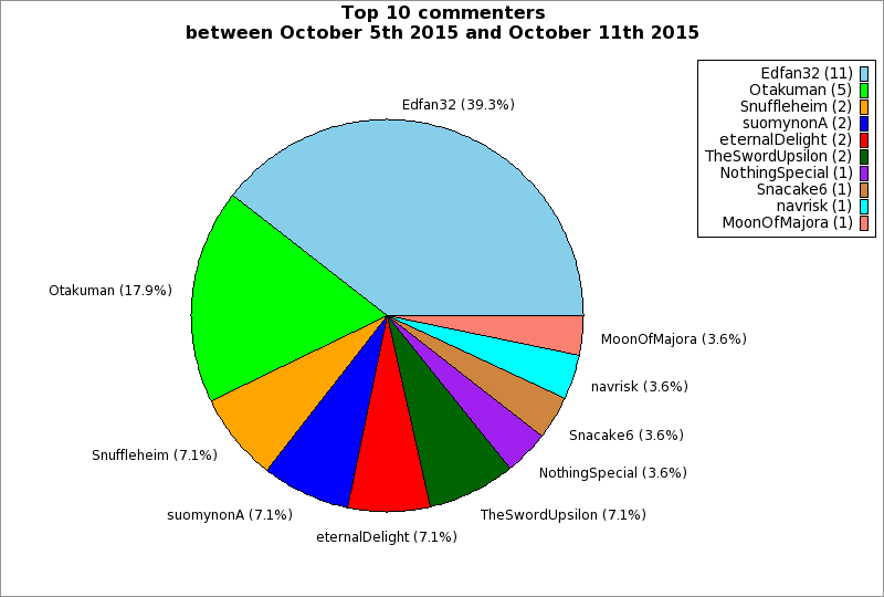| Top 10 commenters between October 5th 2015 and October 11th 2015 | ||