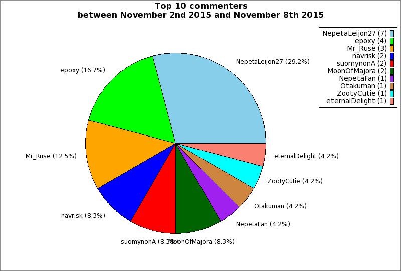 | Top 10 commenters between November 2nd 2015 and November 8th 2015 | ||