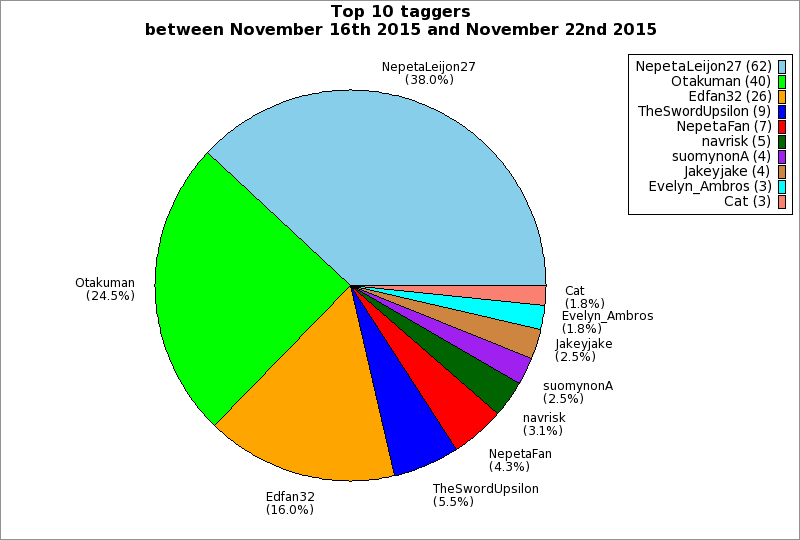 | Top 10 taggers between November 16th 2015 and November 22nd 2015 | ||