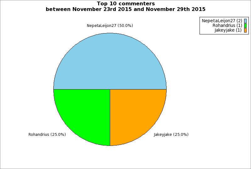 | Top 10 commenters between November 23rd 2015 and November 29th 2015 | ||