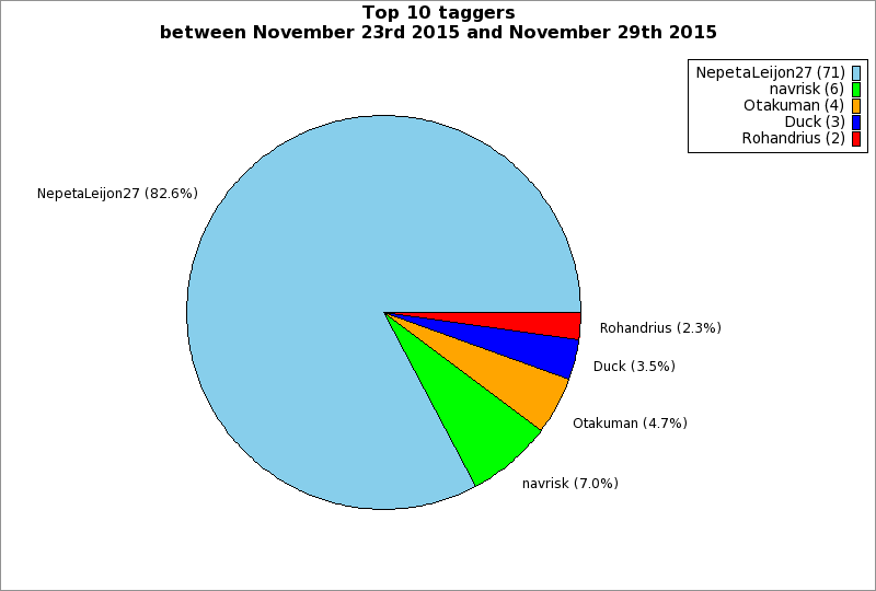 | Top 10 taggers between November 23rd 2015 and November 29th 2015 | ||