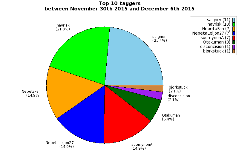 | Top 10 taggers between November 30th 2015 and December 6th 2015 | ||
