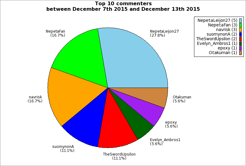 | Top 10 commenters between December 7th 2015 and December 13th 2015 | ||