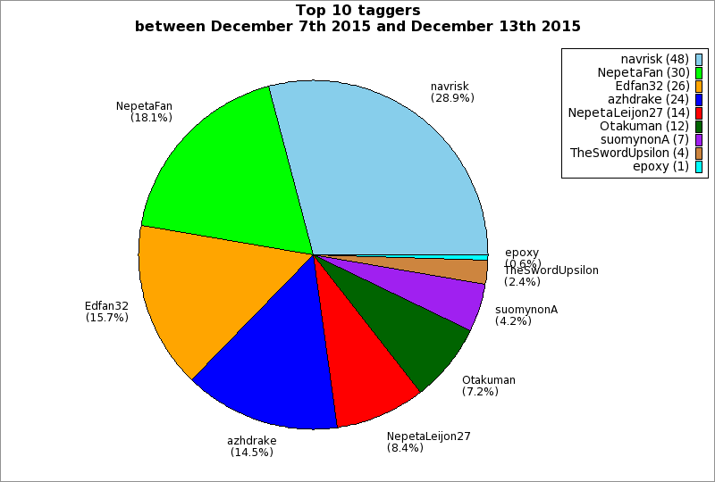 | Top 10 taggers between December 7th 2015 and December 13th 2015 | ||