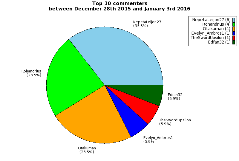 | Top 10 commenters between December 28th 2015 and January 3rd 2016 | ||