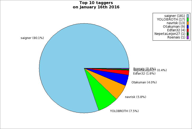 | Top 10 taggers on January 16th 2016 | ||