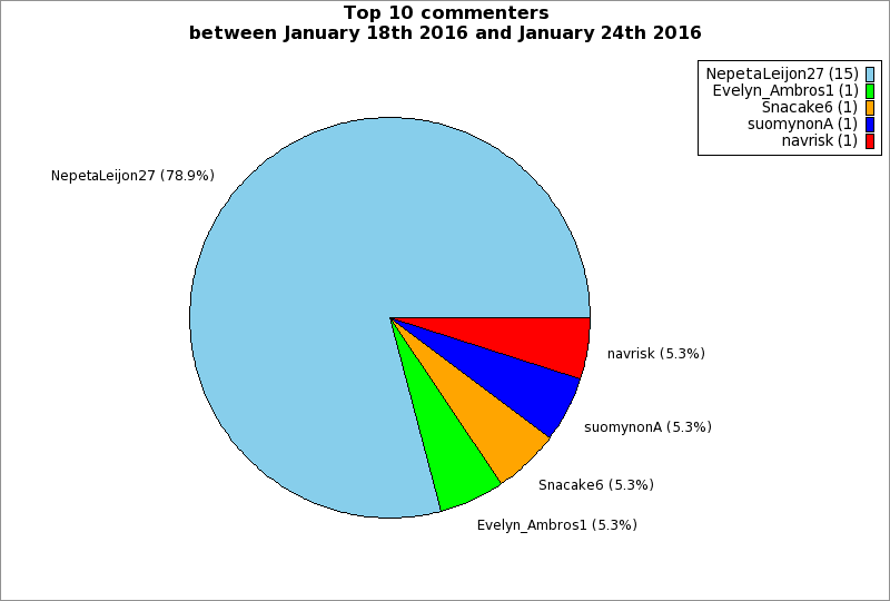 | Top 10 commenters between January 18th 2016 and January 24th 2016 | ||