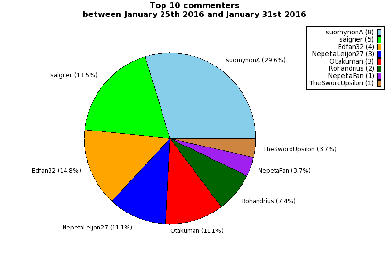 | Top 10 commenters between January 25th 2016 and January 31st 2016 | ||