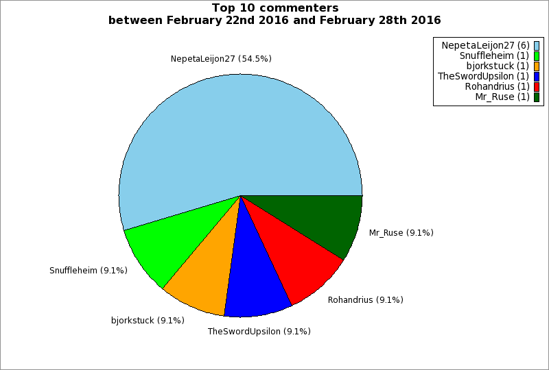 | Top 10 commenters between February 22nd 2016 and February 28th 2016 | ||