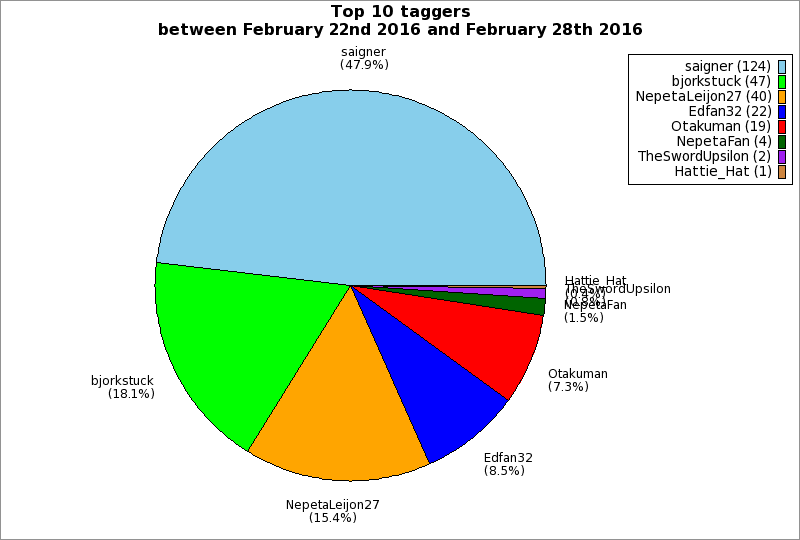 | Top 10 taggers between February 22nd 2016 and February 28th 2016 | ||