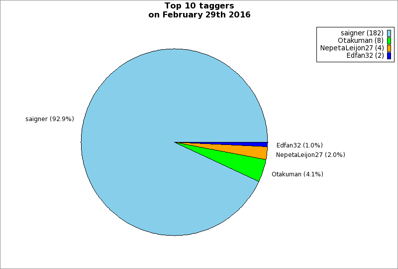 | Top 10 taggers on February 29th 2016 | ||