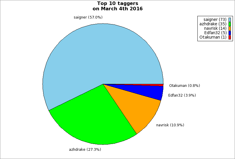 | Top 10 taggers on March 4th 2016 | ||