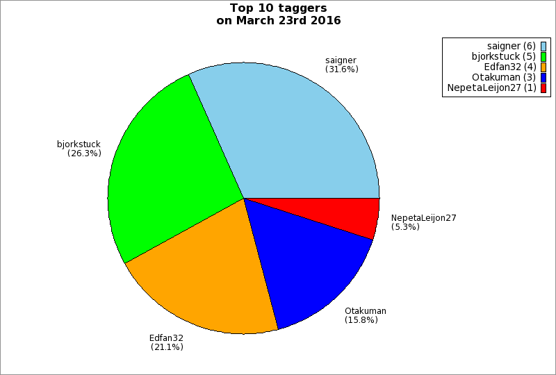 | Top 10 taggers on March 23rd 2016 | ||
