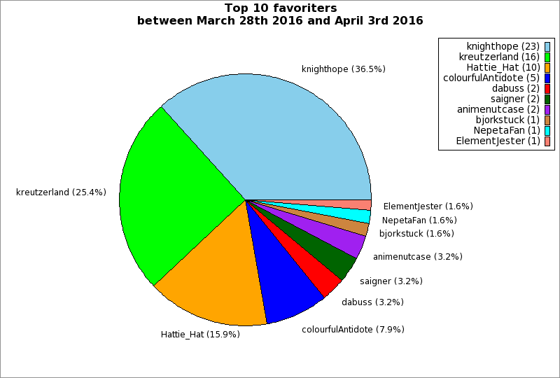 | Top 10 favoriters between March 28th 2016 and April 3rd 2016 | ||