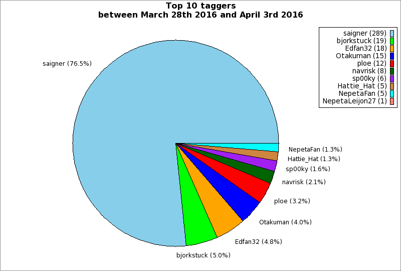 | Top 10 taggers between March 28th 2016 and April 3rd 2016 | ||