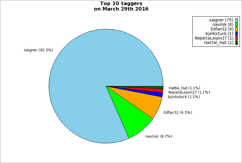 | Top 10 taggers on March 29th 2016 | ||