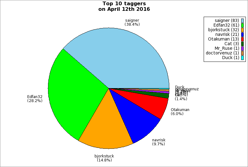 | Top 10 taggers on April 12th 2016 | ||