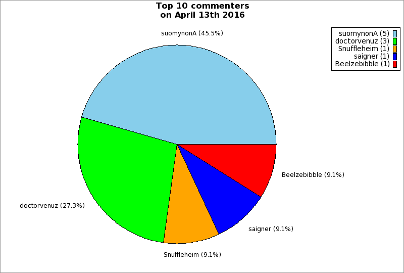 | Top 10 commenters on April 13th 2016 | ||