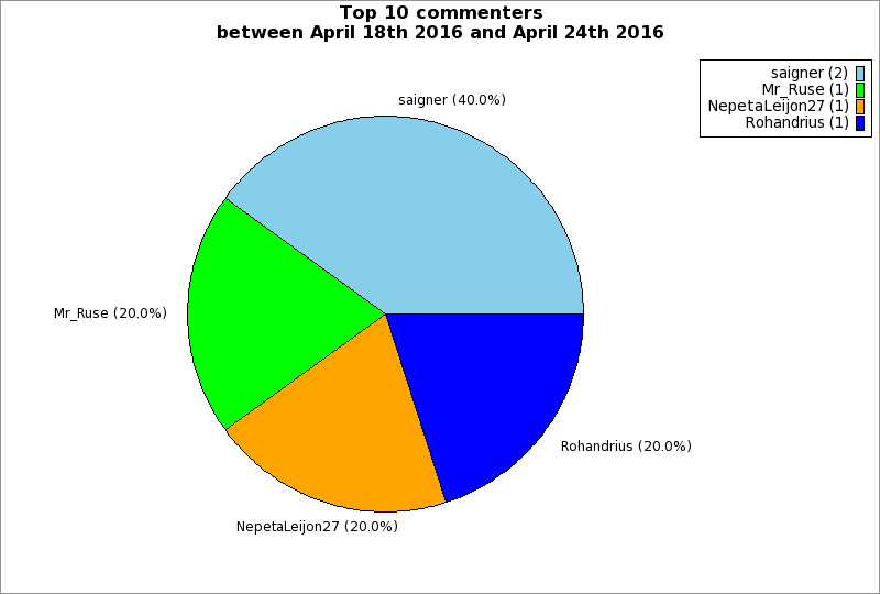 | Top 10 commenters between April 18th 2016 and April 24th 2016 | ||
